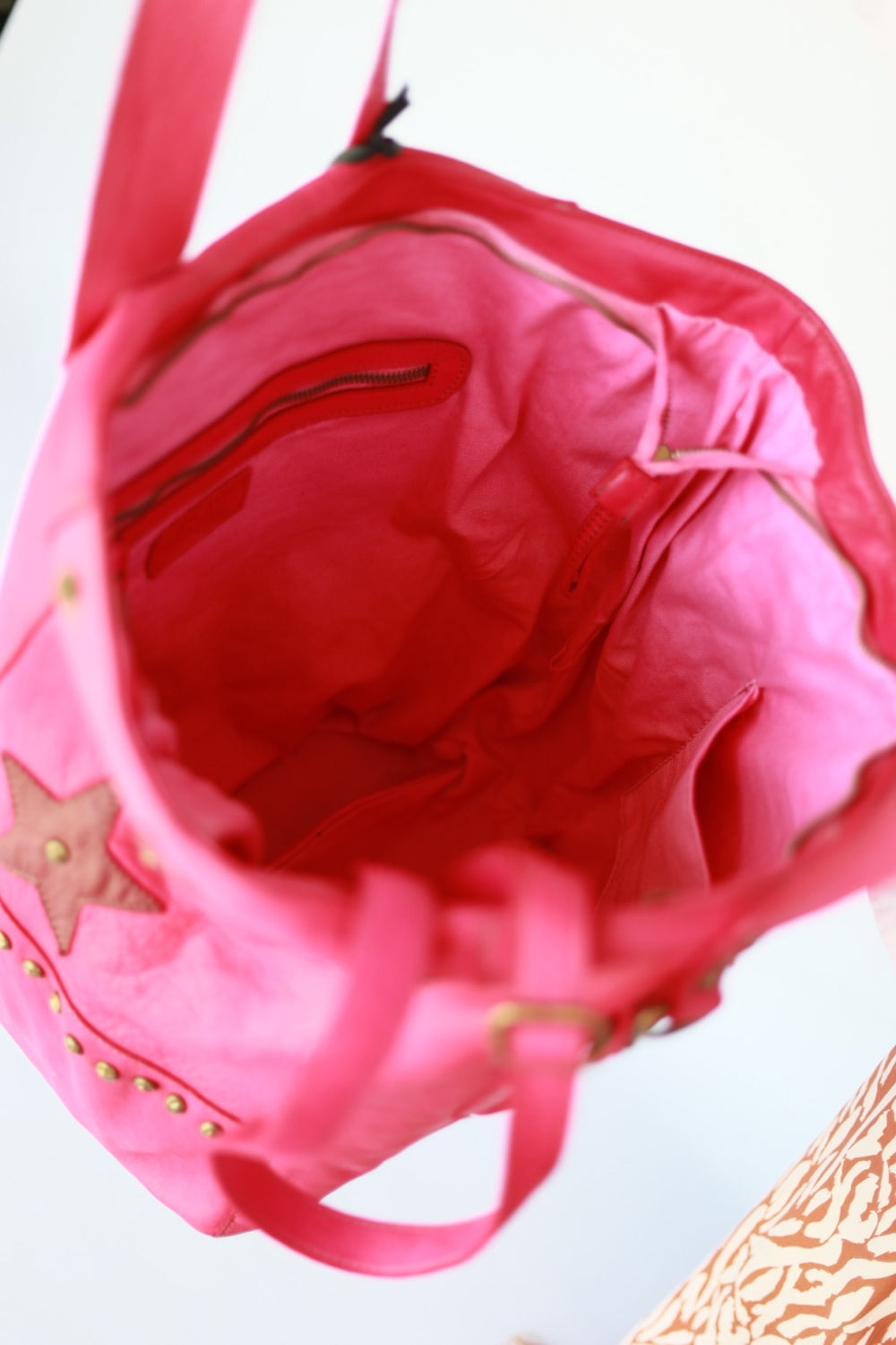 Red Leather Tote with Star Detail & Stud Accents