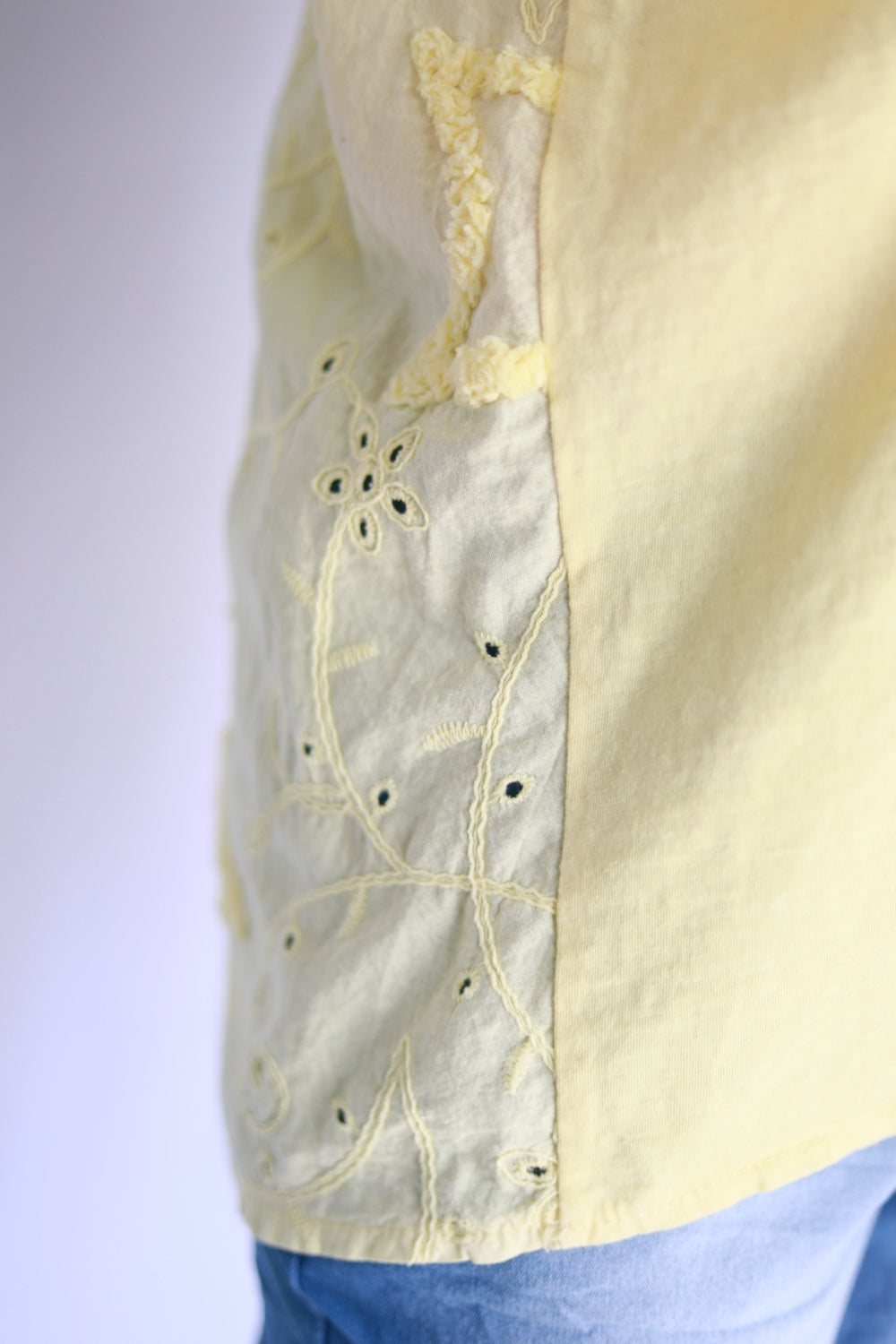 Short sleeves with a slight ruffle detail on the edges for a feminine touch.